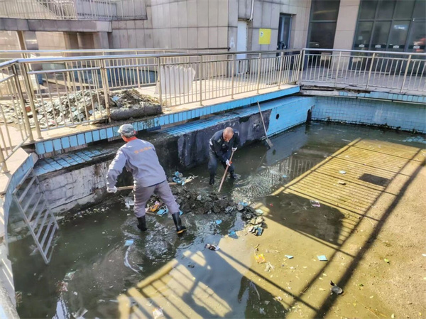 随着季节更替和日常使用,小区下沉广场地下水系区域逐渐积累了大量瓷砖碎片、枯枝落叶、沉积淤泥及各类生活垃圾,不仅影响了水系的整洁美观,堵塞了水流通道,长期堆积还易滋生异味,既破坏了小区的整体风貌。为切实解决这一问题,山东信达物业管理有限公司高度重视,迅速部署、精心安排,组织专业保洁及维修等工作人员,正式启动地下水系专项清疏整治行动,以实打实的举措回应业主关切。